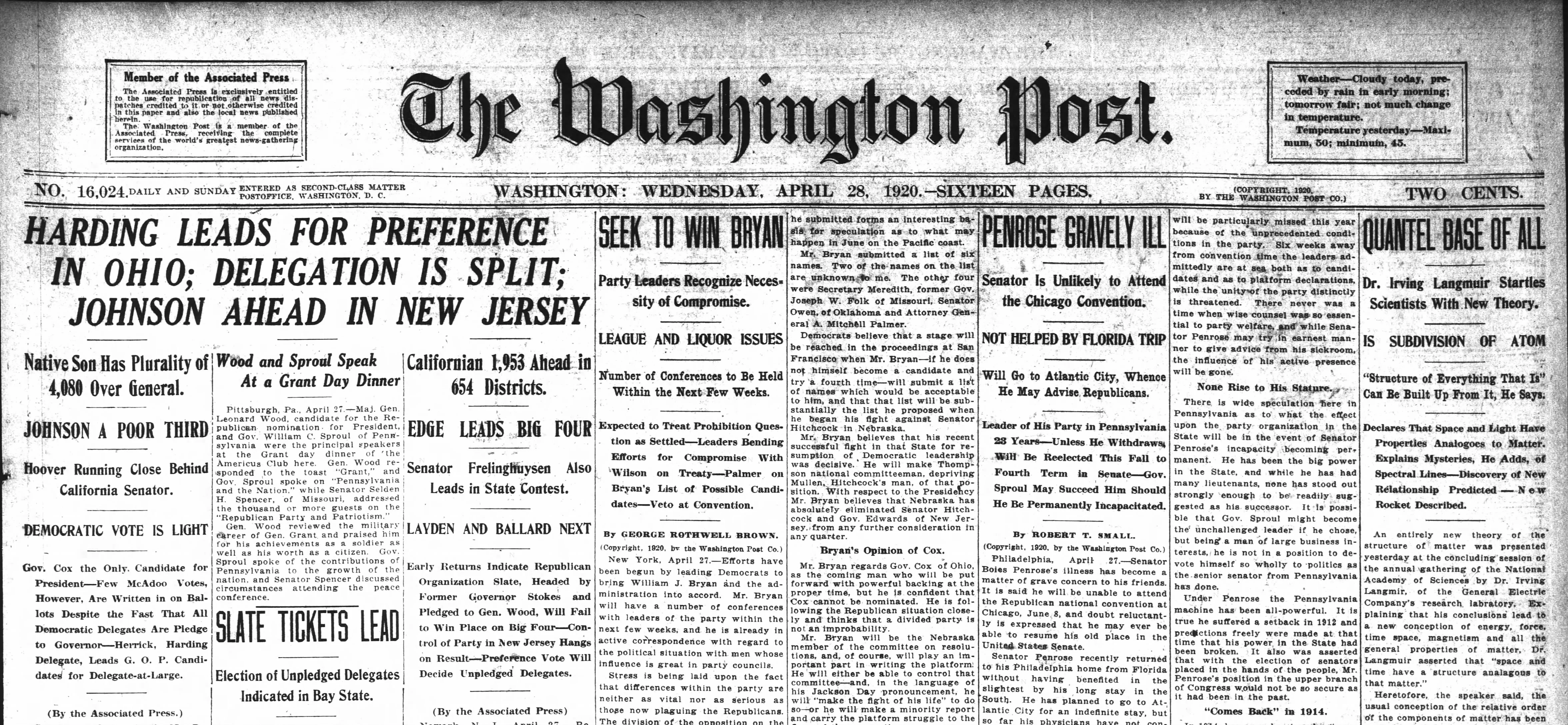 The day after Langmuir presented his paper, scores of newspapers around the country carried the story. Some put the news on their front page. The New York Times wisely buried it on page 10, but in the Washington Post, it wasn’t nearly on the front page; it was the lead article.