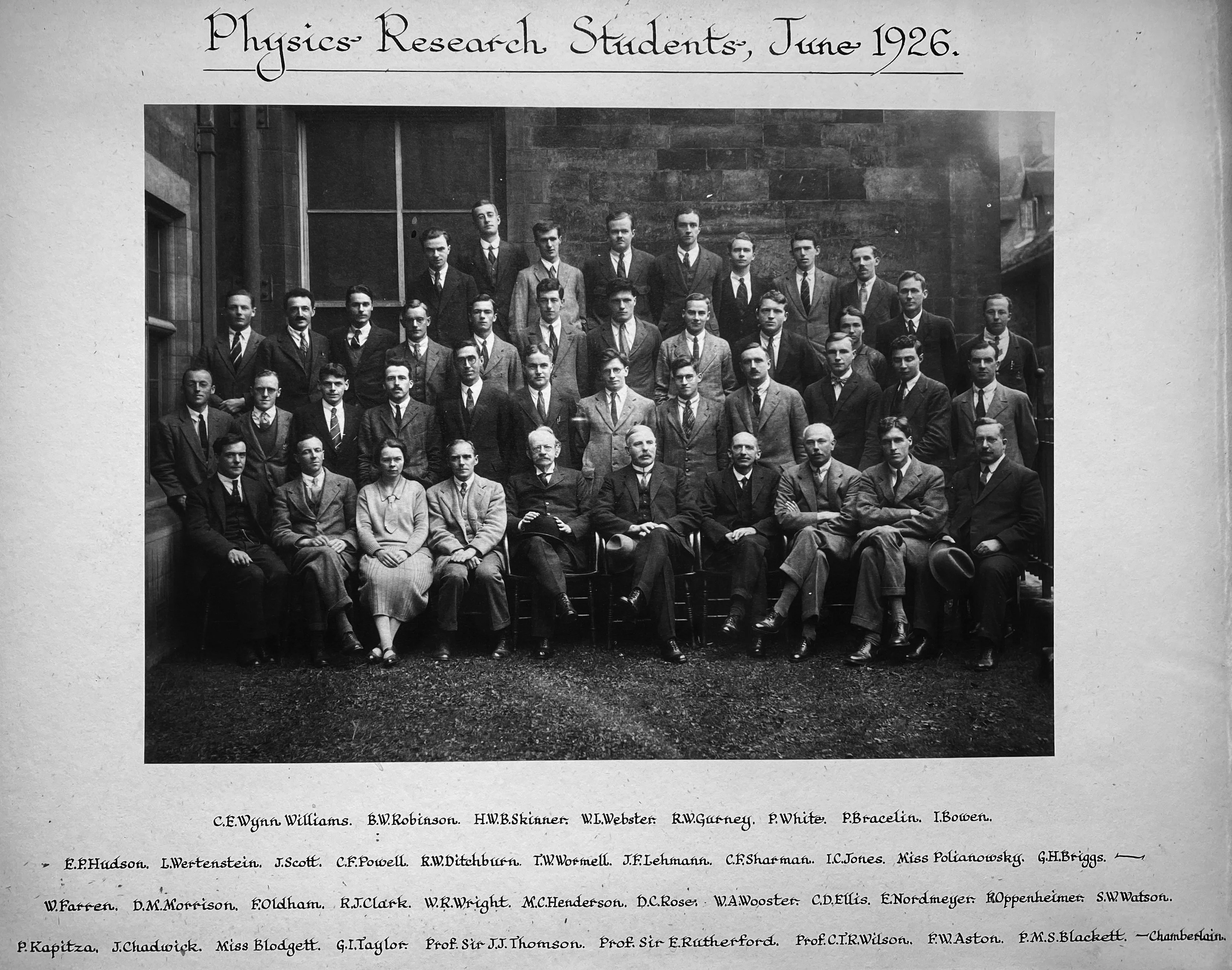 Katie Hafner: J. Robert Oppenheimer is just one in this star studded line-up and Katharine’s right there, impressing Sir Ernest Rutherford and the top physicists at the Cavendish.