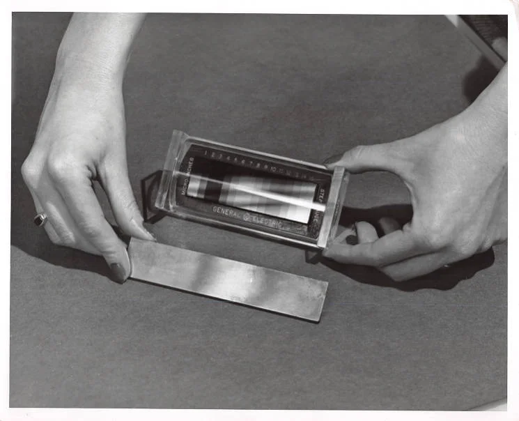As she added layer after layer to a metal plate, she noticed the light reflecting off its surface change from yellow-brown to dark blue to light blue, spanning all the way to a red-yellow. She noticed that the color the thin film reflected corresponded with the number of layers it contained, and she created a color gauge to track it. For example, if the color reflected was a yellow, it corresponded to a film six-millionths of an inch thick; for red it was seven-millionths.